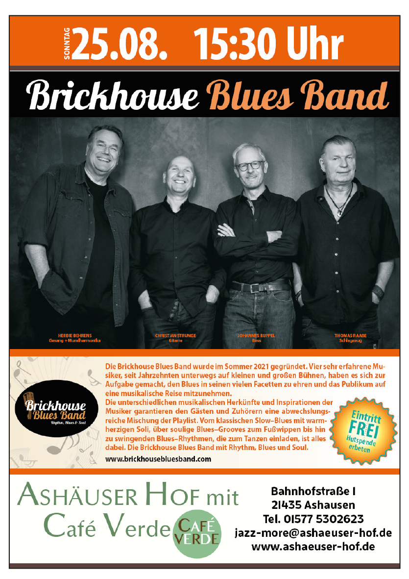Brickhouse Blues Band mit ihren 4 erfahrenen Musikern ehrt in vielen Facetten den Blues.