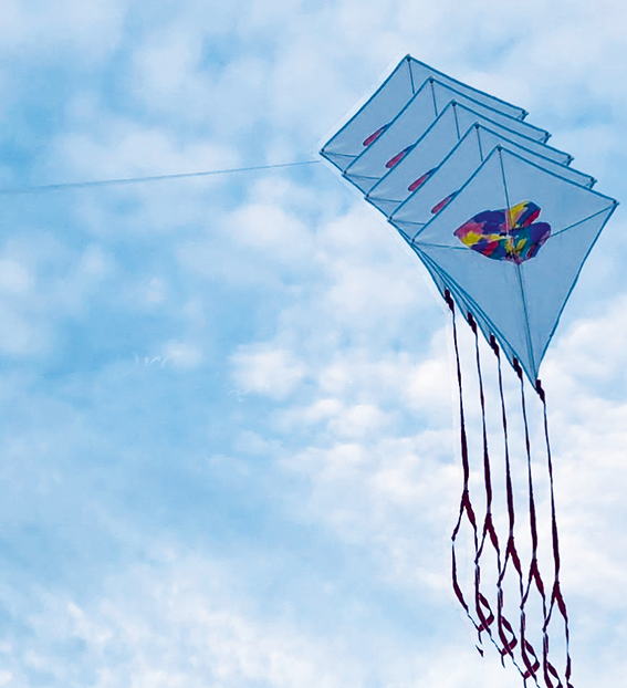 Die Kinder vom Fliegenberger Kindergarten und von der Grundschule Fliegenberg lassen ihre selbstgebastelten Drachen steigen. Ein Spaß für die gesamte Familie.