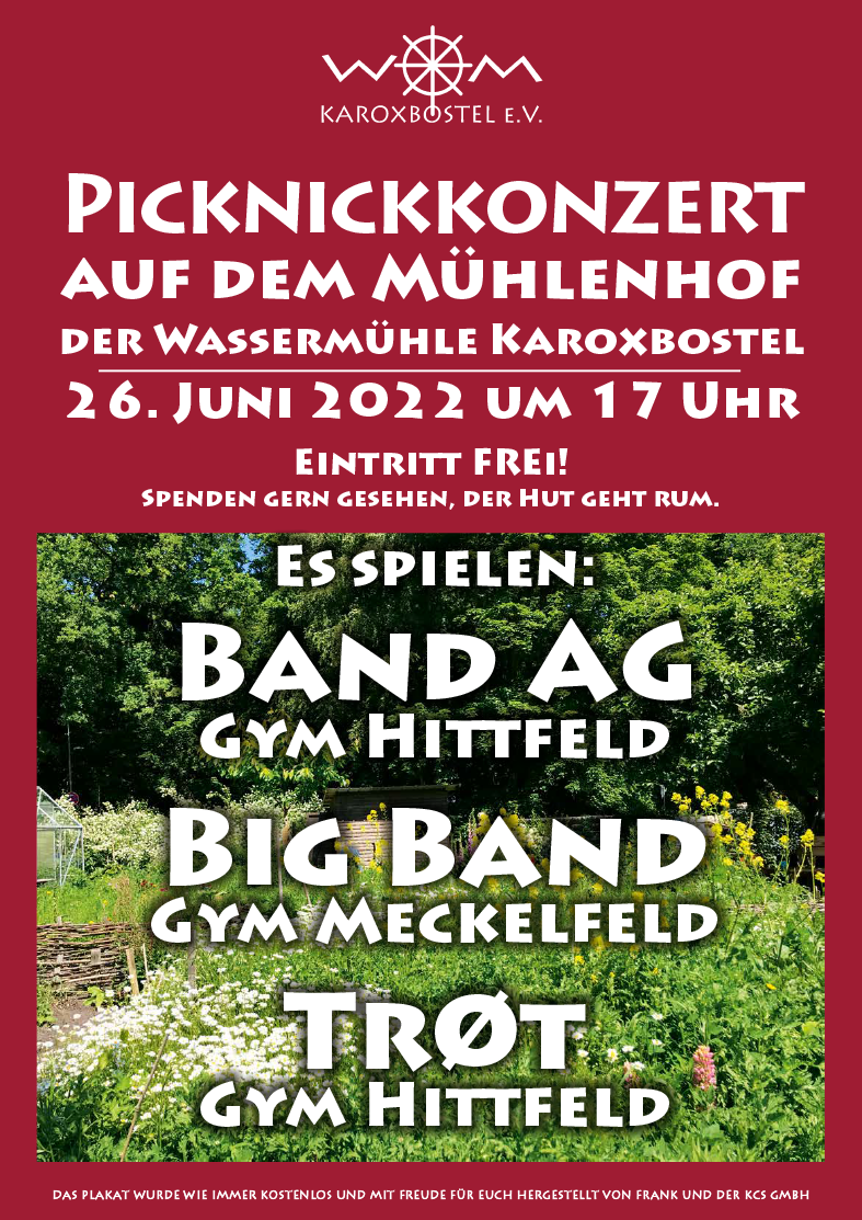 Auf dem Mühlenhof der Wassermühle Karoxbostel findet das erste Picknick-Konzert statt.