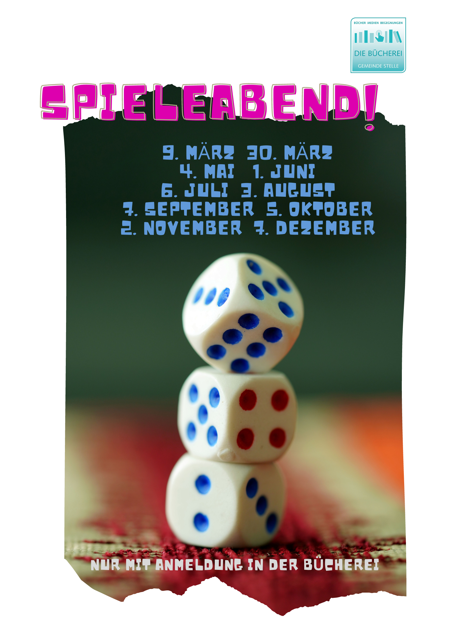 Gemeindebücherei Stelle Unter den Linden 18b, 21435 StelleSpieleabend für Erwachsene – Zum Kennenlernen von neuen Spielen oder spielen mit Klassikern. Für jeden Geschmack ist etwas dabei. Kommen Sie und spielen Sie mit! Selbstverständlich können auch eigene Spiele mitgebracht werden! Bitte anmelden 04174 / 6158 oder buecherei@gemeindestelle.de